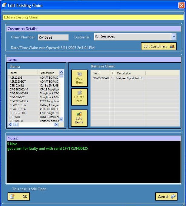 As you can see, here is the main part of the claim. On the top are the basic details,