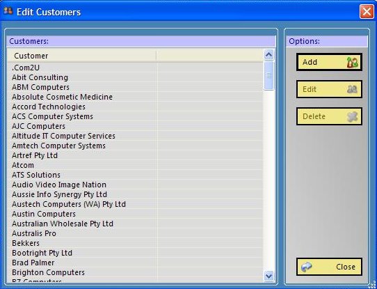 or Delete them. You can also access this window by pressing "Edit Customers" from