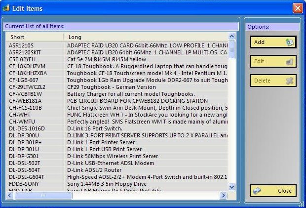 As above, you can Add, Edit or Delete any item. On this window, you have two columns,