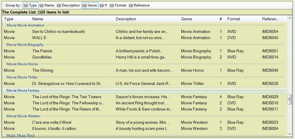 by Type and then Genre. It would turn out like this: