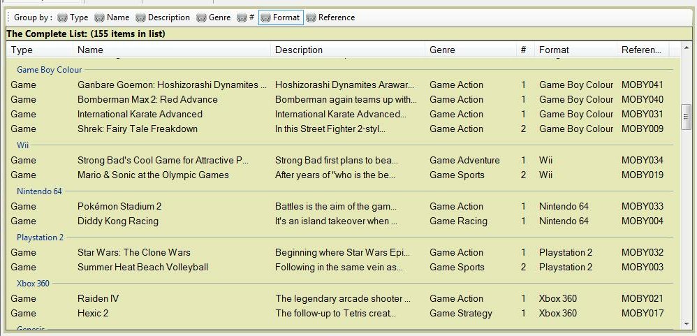 Similarly, just Grouping by Format would produce: