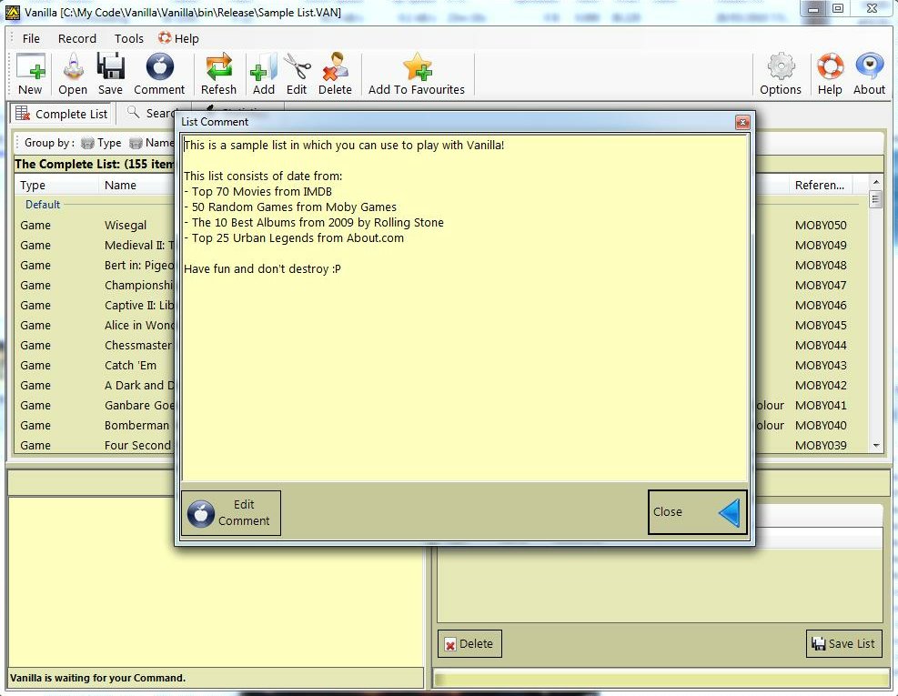 You might of noticed that when you load up the Sample List, that there is a Comments